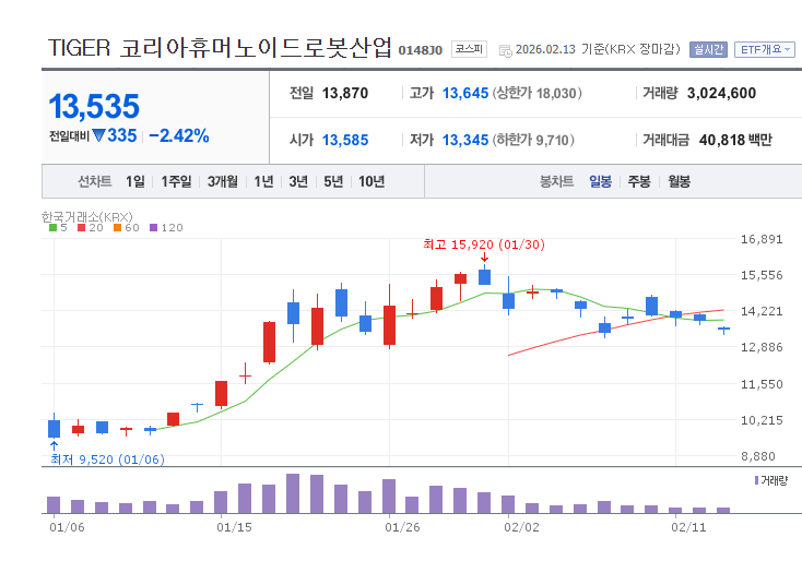 ※ 본 포스팅은 2026년 2월 13일 장 마감 데이터를 바탕으로 작성되었으며, 정보 공유를 목적으로 합니다. 투자의 책임은 투자자 본인에게 있습니다.
