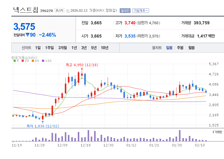 4. 넥스트칩 (396270) – "차량용 AI 반도체 국산화의 선두"