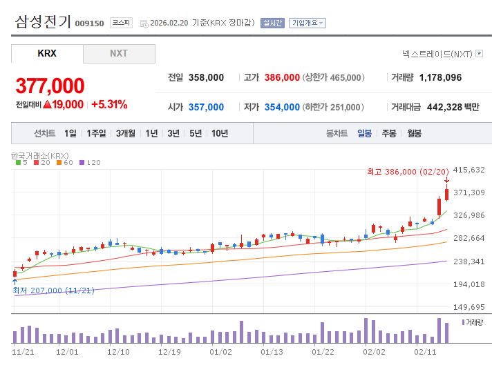 안녕하세요! 이번에는 '삼성의 소리 없는 강자'에서 'AI와 전장의 핵심 엔진'으로 진화한 삼성전기(009150)의 주가 분석과 2026년 상승 모멘텀을 정리해 드립니다.